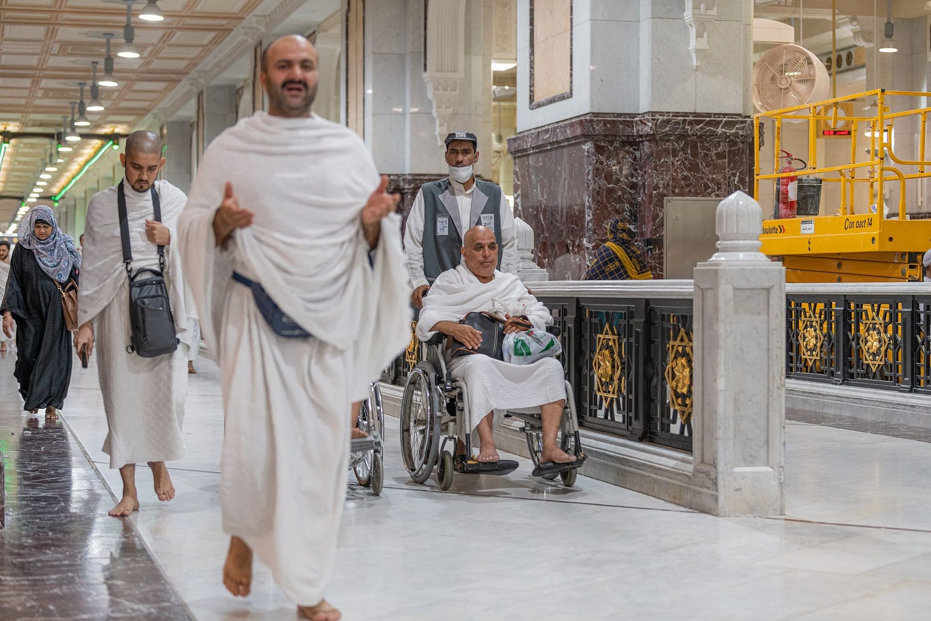 Tersedia di Masjidil Haram layanan pendorong kursi roda, juga kursi roda eletrik dan manual.